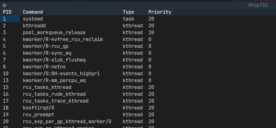- Now you have to filter if they’re a process or kernel thread. We recommend you to apply the mask that the htop code applies to the flags content to see if they are a kernel thread 1.