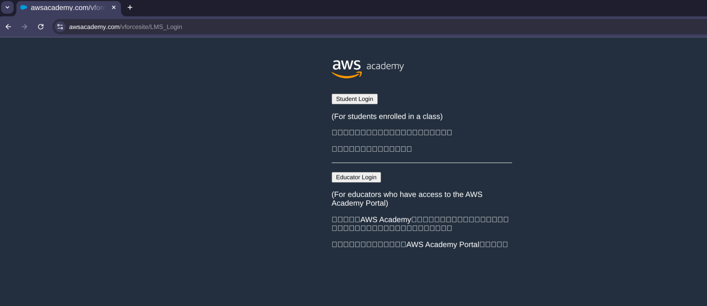 First of all, go to the aws academy login webpage, you will see the following page, click on Student Login: