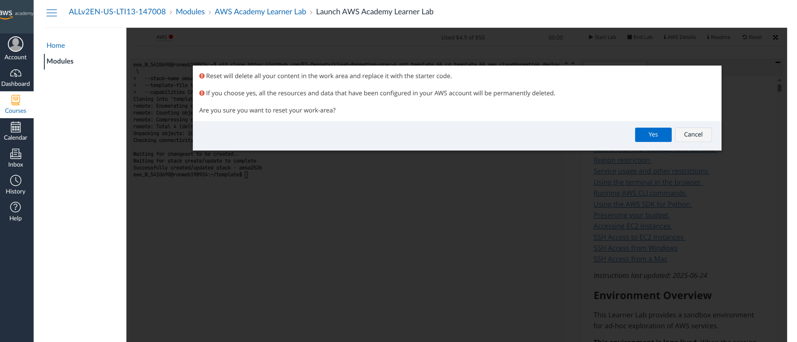 You might want to reset an AWS lab to return the environment to its original, clean state when things go wrong or become confusing.