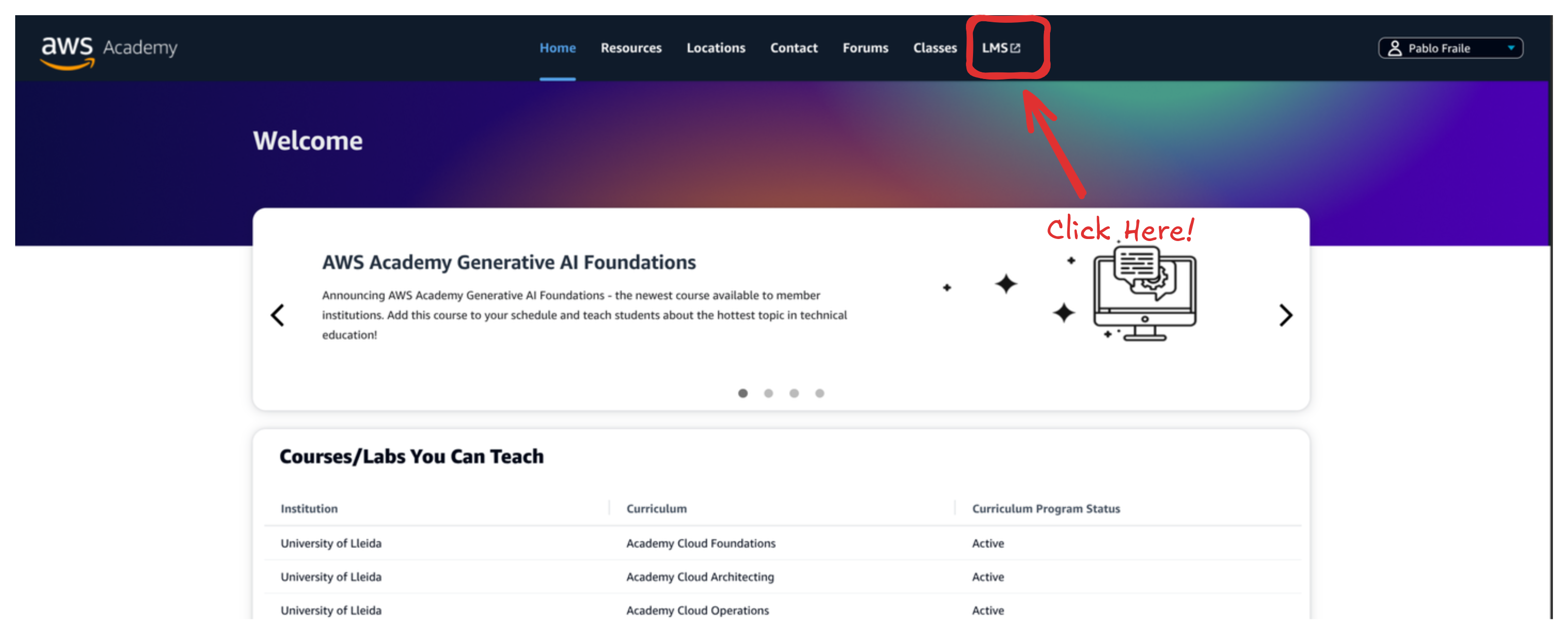 Login to AWS Academy and access the course