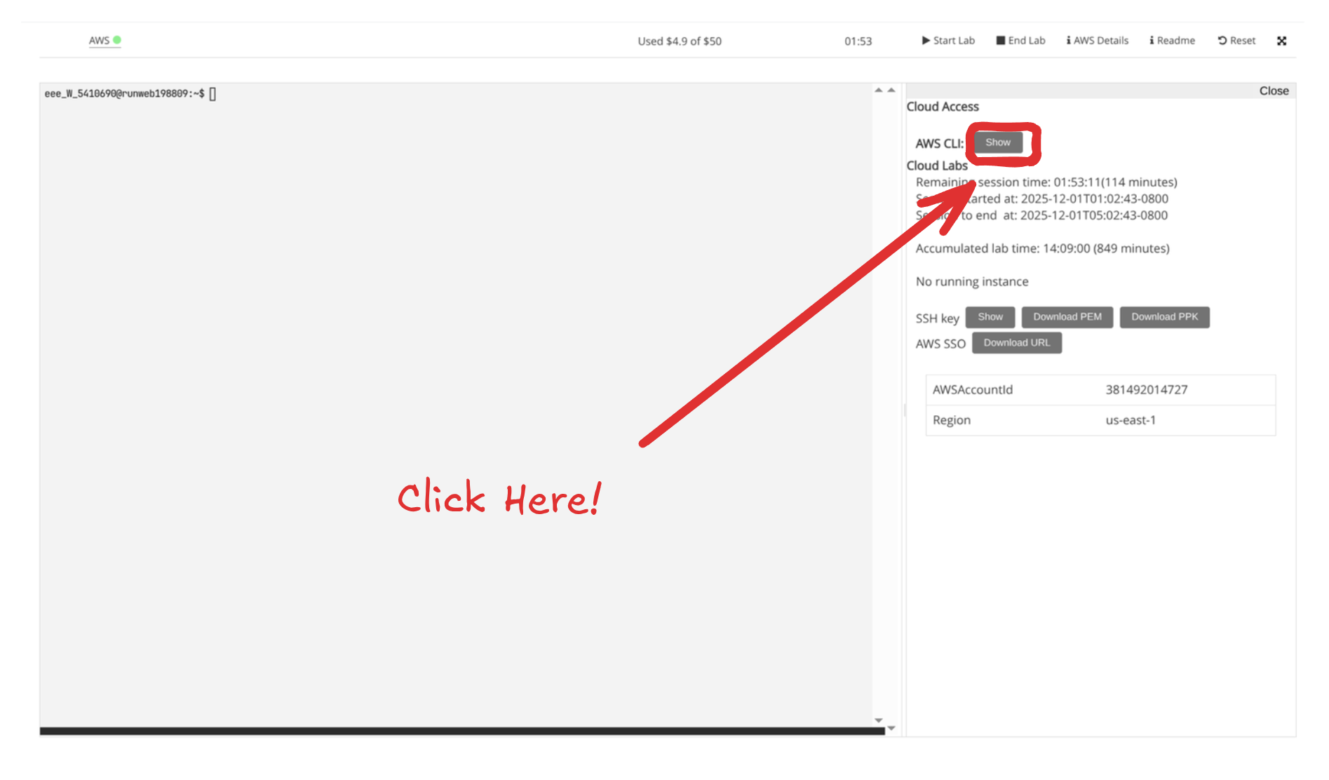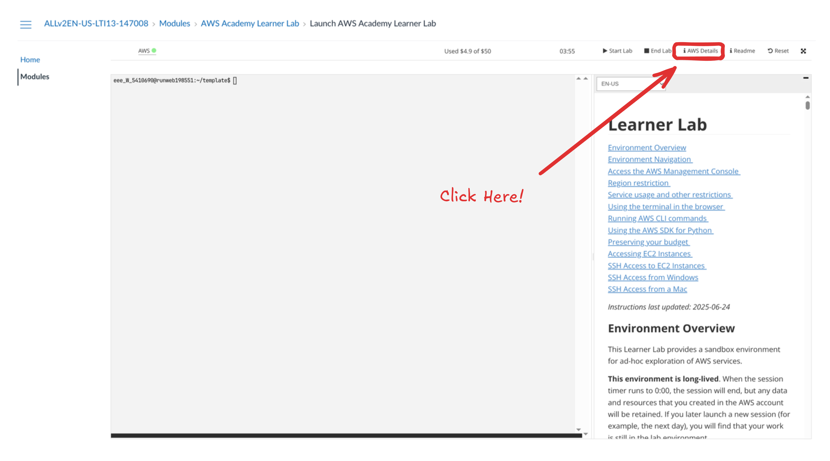 Click the AWS Details button on the lab: