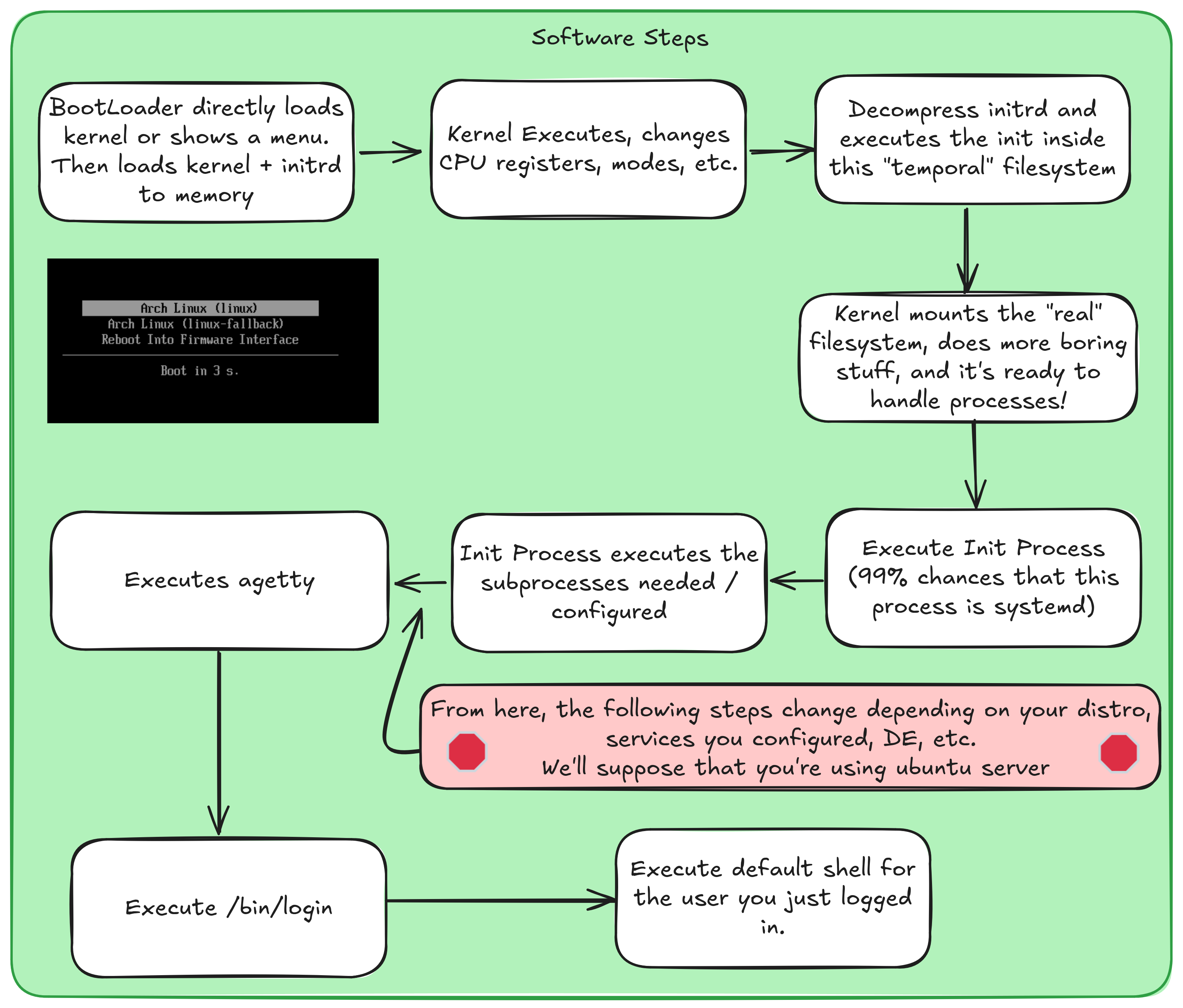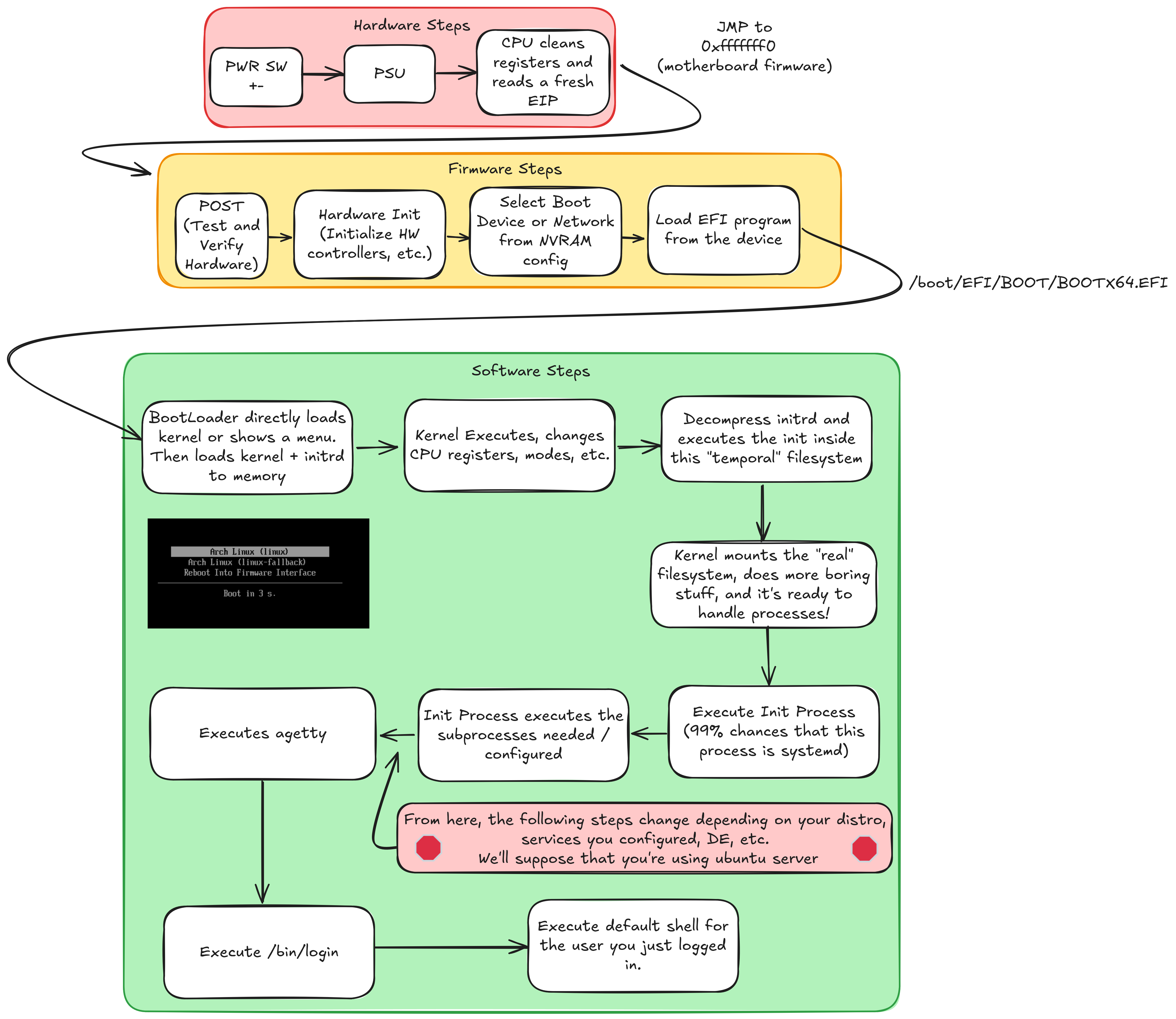 ArchLinux booting process: https://wiki.archlinux.org/title/Arch_boot_process