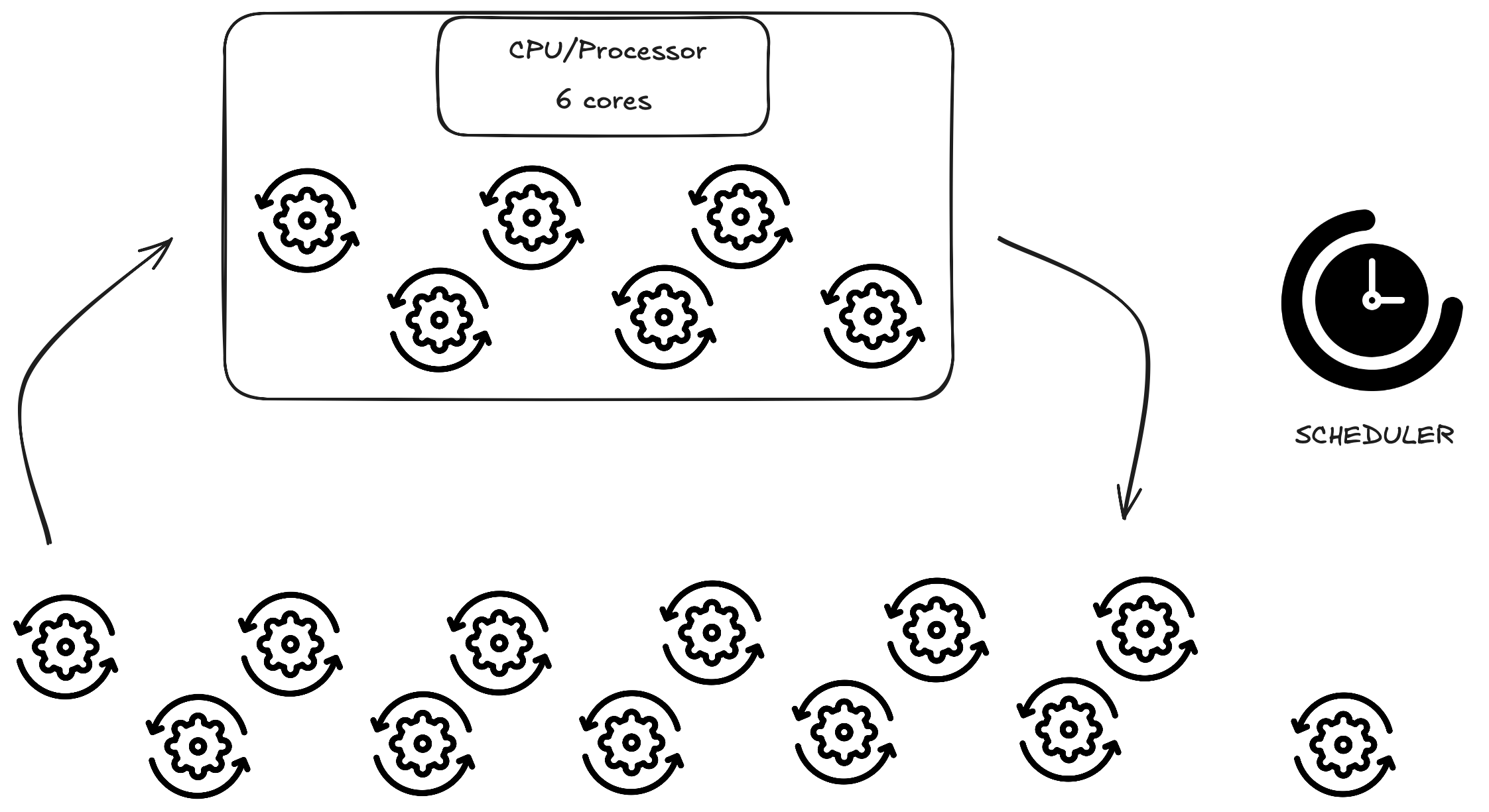 We need a scheduler because we want to run things concurrently, and run more tasks than cores.